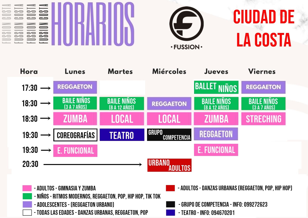 - Plan por 30 días.<br> - Descuento válido únicamente para el primer mes.<br> - <b>Solo para alumnos nuevos</b> de Fussion (Ciudad De La Costa).<br> - Sin obligación de permanencia en Fussion (Ciudad De La Costa).<br> - Fecha límite para utilizar el pase: 180 días posterior a la compra.<br> - Al realizar la compra recibirás tu pase por e-mail con todas las instrucciones.<br> - ¡Es válido para regalo!<br> - Sin contratos. ¡Matrícula exonerada!<br>